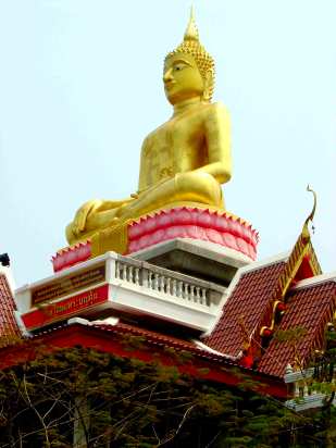 The prize for the prettiest temple would probably go to Wat Tung Sawang. Its tiny but immaculately sculptured chapel with highly detailed porticos, and its collection of Buddhist deities outside, each under its own fanciful little roof, gives it an Alice in Wonderland bizarreness.